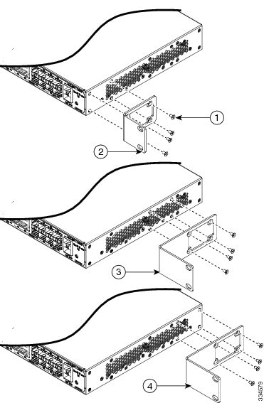 Figure 3-4 shows how to attach brackets for ETSI racks on the router.