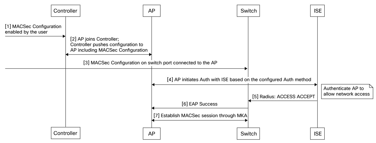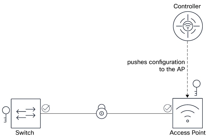 • uses the IEEE 802.1AE standard to apply hop-by-hop link encryption between the AP and the access switch