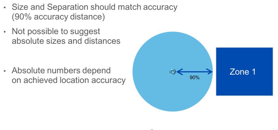 The critical part here is the 90% Error Distance Figure. Think of this as the radius of the smallest zone that could be created for that floor.