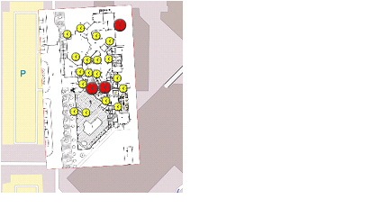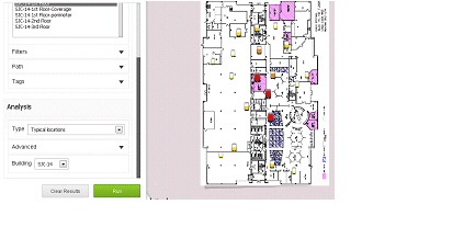 Press the run button and this should carry out a typical location analysis for today across the whole building. Here we check that the distribution of device icons show areas where it is expected most/least people visited for the whole day. This check can be further refined by limiting the zones or time window.