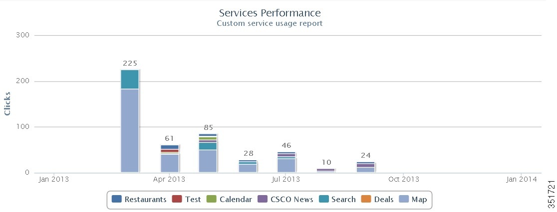 Step 2 To view the Services Performance and Service Clicks for today, in the Services tab, click Today and then click Apply.