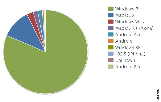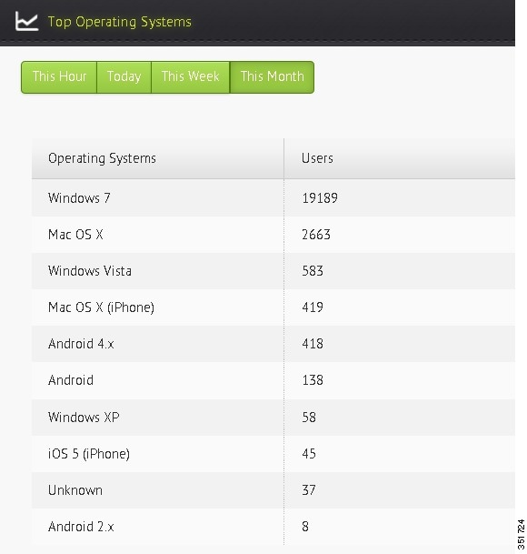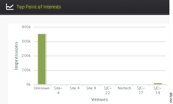 The usage of CMX Dashboard appears as a graph of impressions versus days. As you scroll down, you can view the top point of interests, top services, and top domains. To analyze the pattern of operating systems customer's mobile devices within a venue, you can view the top operating systems.