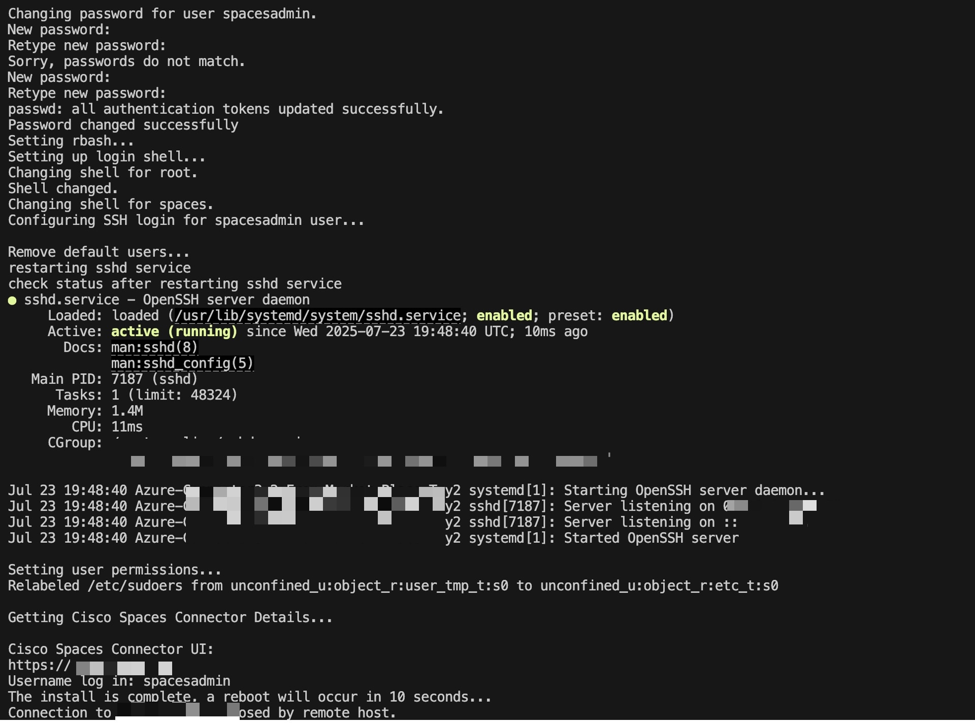 Enter the password for the Cisco Spaces administrator (spacesadmin).