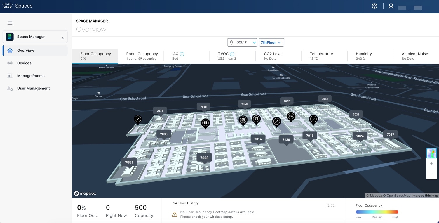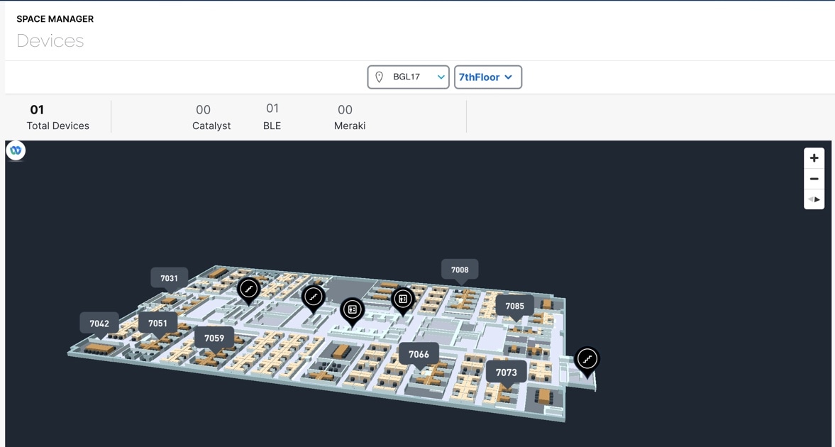 This app also displays environment-related telemetry such as ambient temperature, humidity, air quality, and noise on 3D digital maps for the meeting room, floor, or building.