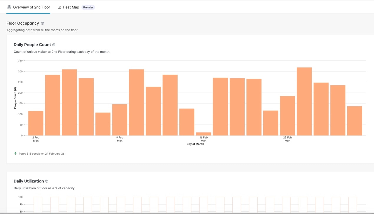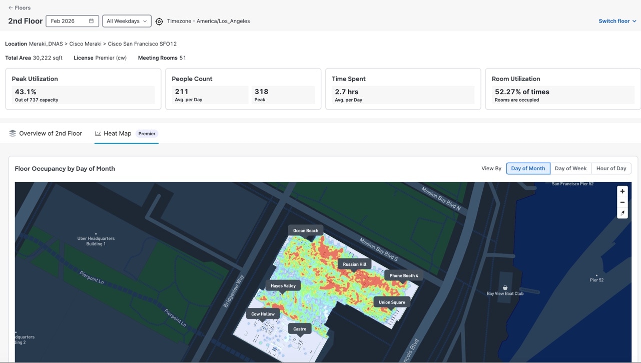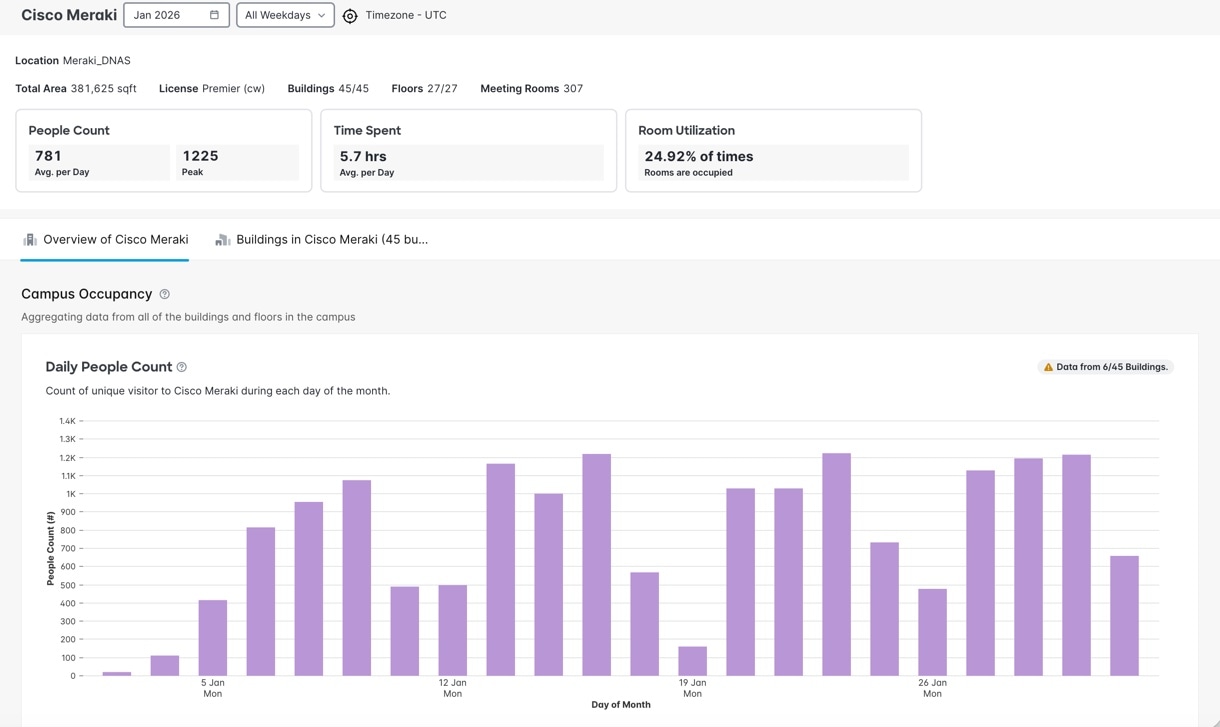 Choose either the Overview tab or the View by Buildings tab to understand the space utilization at a campus or building level.