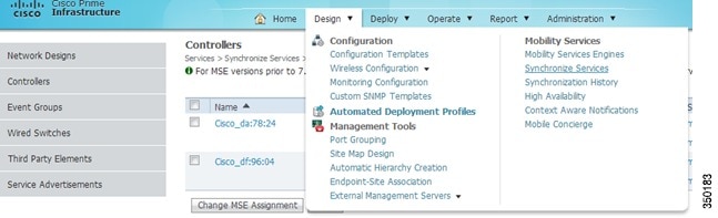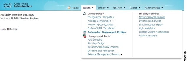 Login to PI and click Mobility Services Engine from the Design drop-down menu.