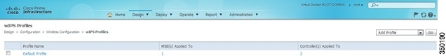From the top-level PI menu, click Design > Configuration > Wireless Configuration > wIPS Profiles