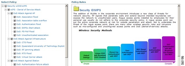 Cisco's Adaptive wIPS system comes with a pre-defined set of profile templates of which customers can use as a starting place to create their own custom profiles. Each one is tailored to a specific vertical and varies in regards to which specific alarms are enabled.