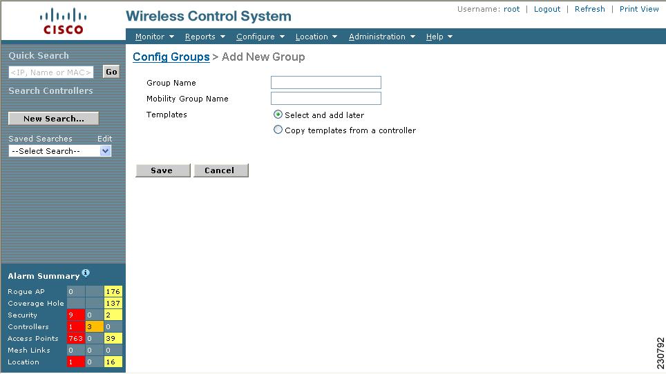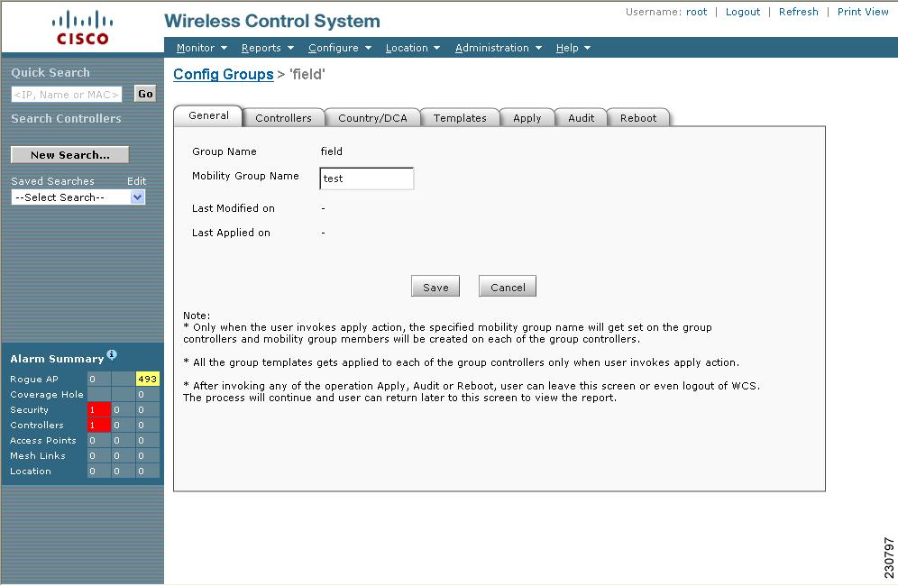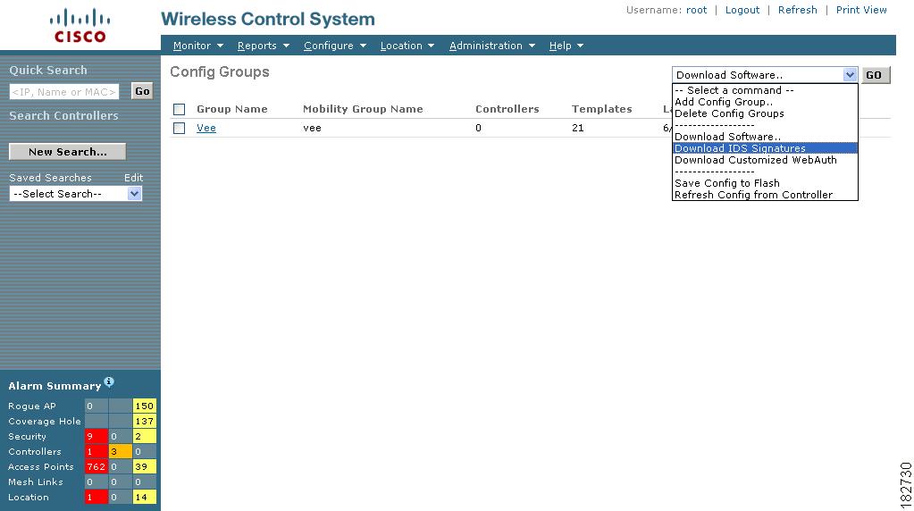 By creating a config group, you can group controllers that should have the same mobility group name and similar configuration. You can assign templates to the group and push templates to all the controllers in a group. You can add, delete, or remove config groups, and download software, IDS signatures, or a customized web authentication page to controllers in the selected config groups. You can also save the current configuration to nonvolatile (Flash) memory to controllers in selected config groups.