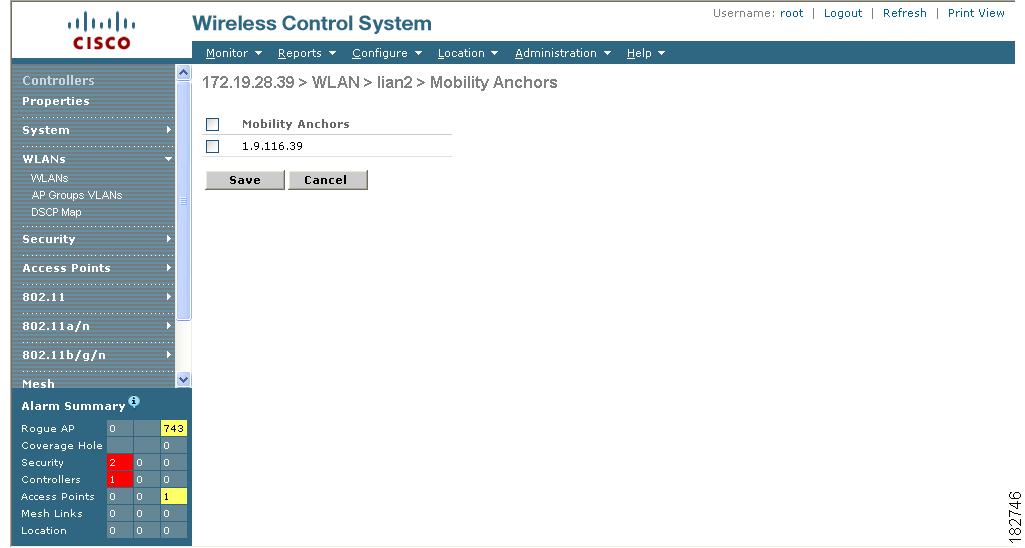 Click the Mobility Anchors link at the bottom of the page. The Mobility Anchors window appears (see Figure 8-10).