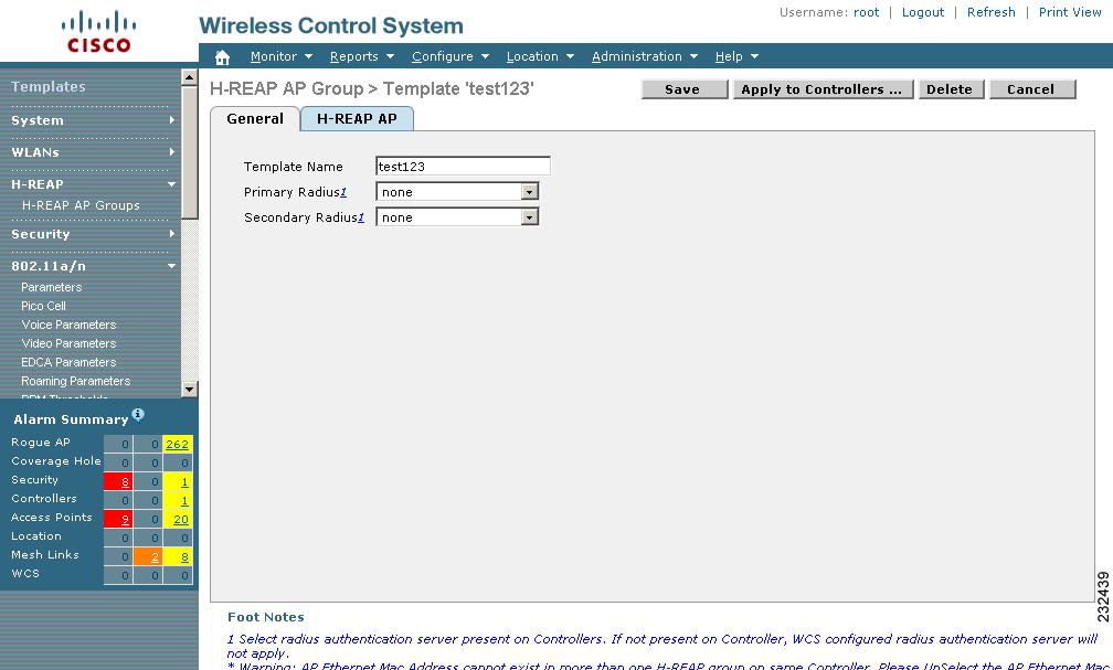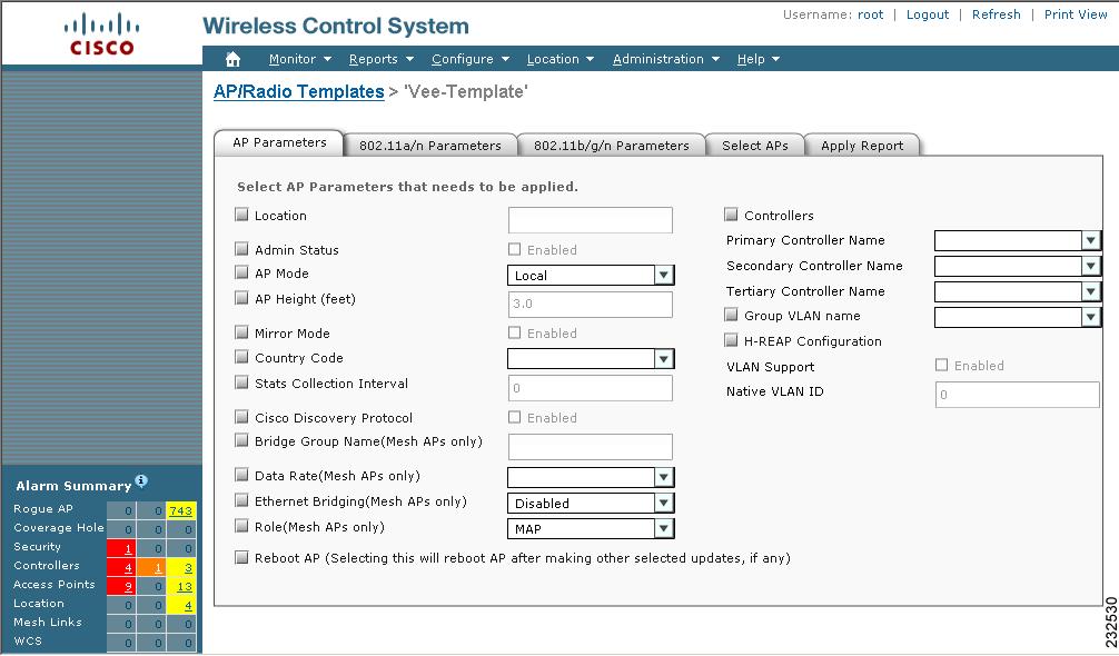 Note When you apply the template to the access point, WCS checks to see if the access point supports REAP mode and displays the application status accordingly. Clicking Apply saves and applies the template parameters to the selected access points. After applying a report, it appears in the Apply Report tab.