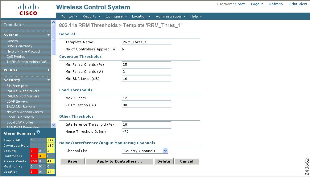 - Configuring an RRM Threshold Template (for 802.11a/n or 802.11b/g/n)