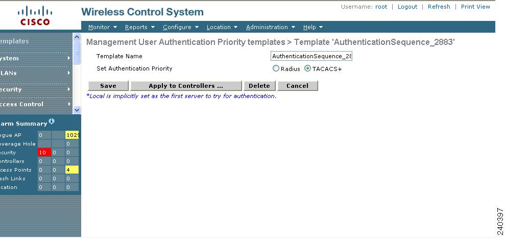 Management user authentication priority templates control the order in which authentication servers are used to authenticate a controller's management users. Follow these steps to add a user authentication priority template or make modifications to an existing template.