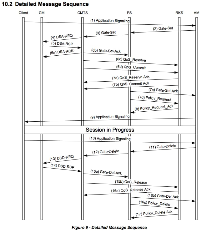 Secuencia de mensajes de la especificación de PacketCable Multimedia (PCMM):