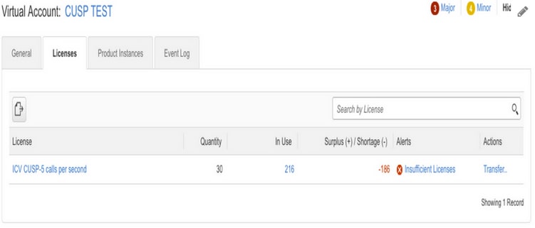 El estado Comprobar uso de licencia se basa en la suma de los recuentos configurados del servidor CUSP en comparación con el recuento de licencias compradas. El estado Comprobar uso de licencia no es el recuento de llamadas por segundo (CPS) en tiempo real.