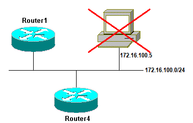Router1#ping 172.16.4.34 Type escape sequence to abort. Sending 5, 100-byte ICMP Echos to 172.16.4.34, timeout is 2 seconds: ..... Success rate is 0 percent (0/5)