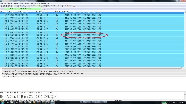 - Vea el número de puerto seleccionando uno de los paquetes que muestra la información del puerto UDP en el panel inferior de la utilidad Wireshark. En la captura de pantalla anterior, se selecciona uno de los paquetes de la secuencia de vídeo y puede ver la información del puerto Src (20568) y del puerto Dst (20808) en el panel inferior.