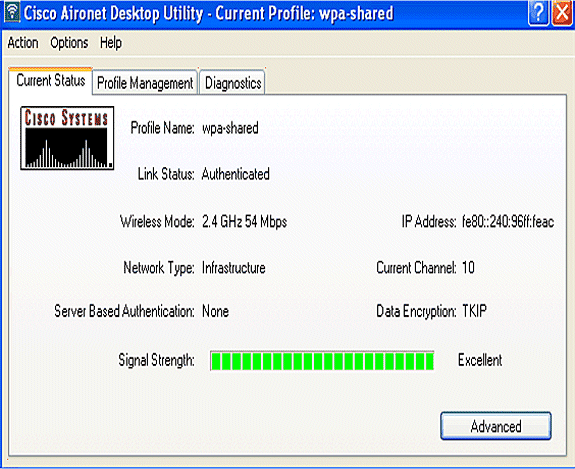 En este ejemplo, el nombre del perfil y el SSID son wpa-shared.