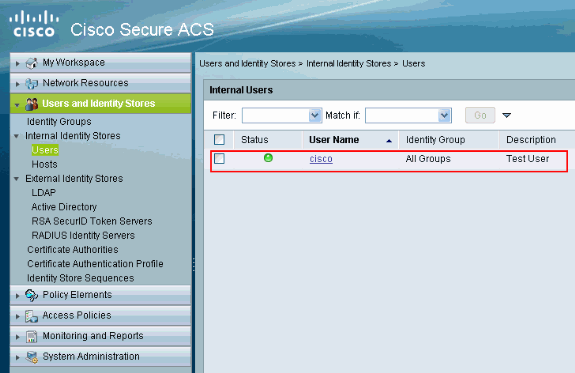 Verá que el cliente Cisco se agrega al servidor ACS.