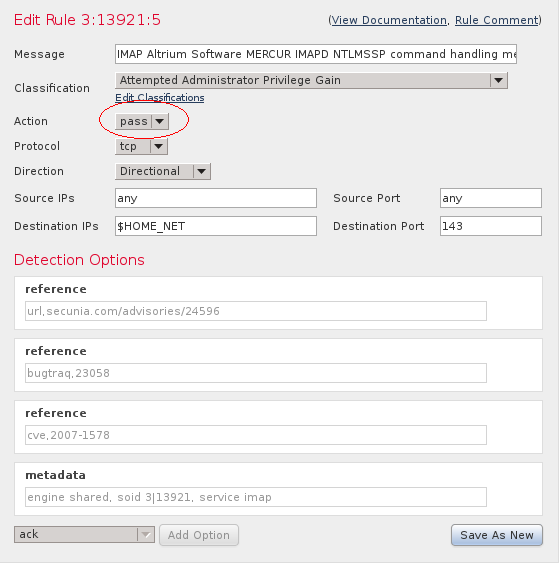 Por ejemplo, es posible que desee que una regla que busque intentos de iniciar sesión en un servidor FTP como el usuario "anonymous" permanezca activo. Sin embargo, si su red tiene uno o más servidores FTP anónimos legítimos, puede escribir y activar una regla de paso que especifique que, para esos servidores específicos, los usuarios anónimos no activarán la regla original.