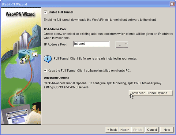 Aparecerá el cuadro de diálogo de túnel completo del Asistente de WebVPN.