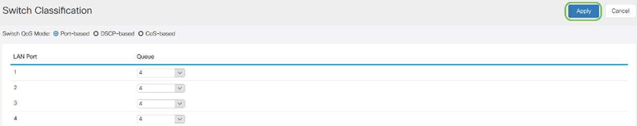 Paso 3. Seleccione el modo de QoS del switch deseado (basado en puerto, basado en DSCP o basado en CoS).