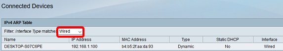 Paso 2. Seleccione una opción del filtro: El tipo de interfaz coincide con la lista desplegable.