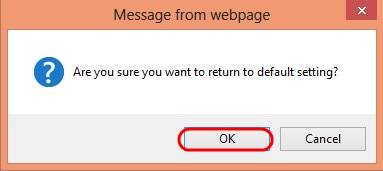 Paso 3. Aparece una ventana de confirmación que le pregunta si está seguro de que desea volver a la configuración predeterminada. Haga clic en Aceptar para confirmar y restablecer los parámetros predeterminados del router.