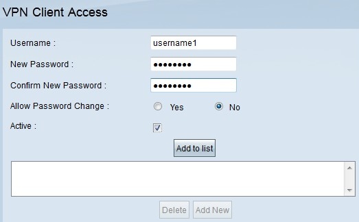 Paso 3. En el campo New Password (Nueva contraseña), introduzca la contraseña que desee que utilice el cliente VPN para iniciar sesión.