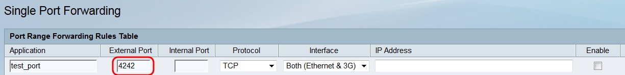 Paso 4. Ingrese un número de puerto en el campo Puerto interno. Este es el puerto en el que está escuchando el dispositivo dentro de su red. Esto puede ser diferente del valor ingresado en el campo Puerto Externo, y el RV215W reenviará el paquete del Puerto Externo al Puerto Interno.