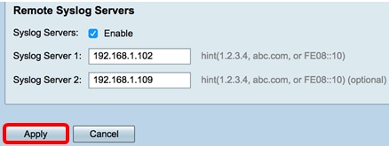 Nota: Para este ejemplo, 192.168.1.102 se utiliza como remoto syslog dirección del servidor.