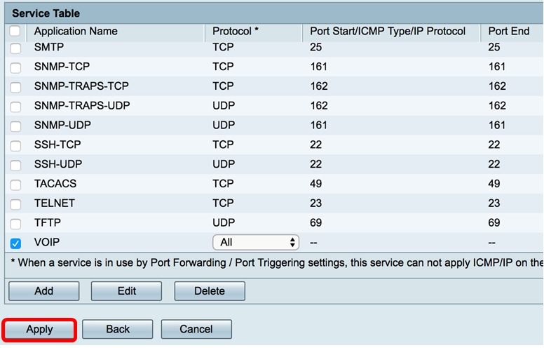 Ahora debería haber agregado correctamente un servicio en un router serie RV34x.