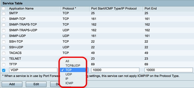 Nota: En este ejemplo, se marca VOIP.
