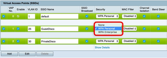 Nota: En este ejemplo, WPA Personal se aplica a ambos SSID.