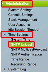 Paso 2. Elija Administration > Time Settings > SNTP Unicast.