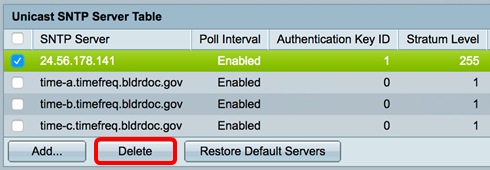 Paso 1. En Unicast SNTP Server Table (Tabla de servidor SNTP de unidifusión), active la casilla situada junto al servidor SNTP que desea eliminar.