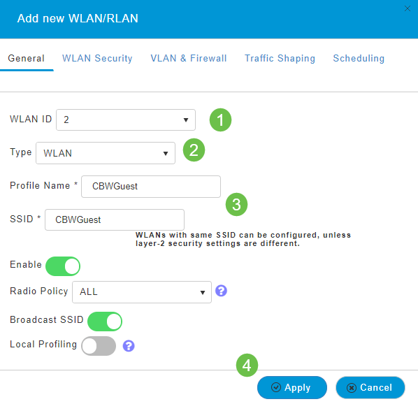 SSID: el nombre del perfil también actúa como SSID. Puede cambiar esto si lo desea. El nombre debe ser único y no debe superar los 31 caracteres.