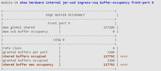 show hardware internal jer-usd ingress-vsq buffer-occupancy front-port <port>