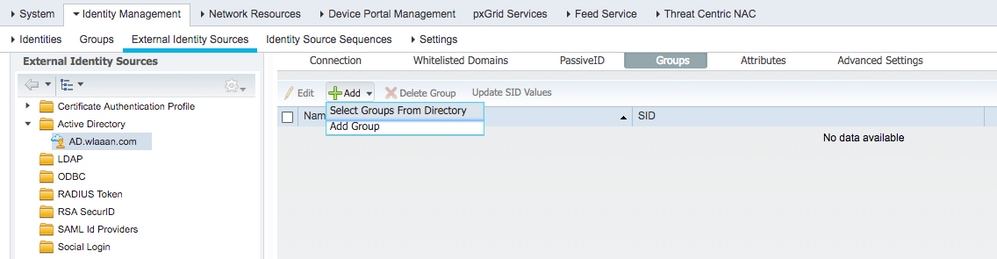 Administration > Identity management > External Identity Sources > Active directory.