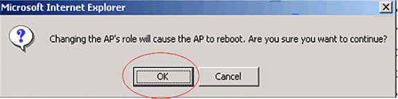 Mientras configura la función de puente, un cuadro de alerta muestra este mensaje: El AP se reiniciará. Para continuar, haga clic en OK (Aceptar).