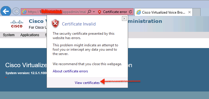 6. Enregistrez le fichier localement sur le noeud CVP. Pour référence à cet article, le fichier de certificat est enregistré à l'emplacement c:\ et ce fichier de certificat est nommé vb12.cer.