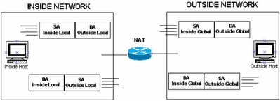 Les paquets originaires de la partie interne du réseau ont une adresse locale interne comme adresse source et une adresse locale externe comme adresse de destination du paquet, tant que le paquet réside sur la partie interne du réseau. Quand ce même paquet est commuté au réseau externe, la source du paquet est alors connue comme l'adresse globale interne et la destination du paquet est connue comme l'adresse globale externe.