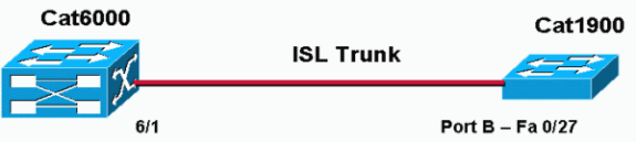 Remarque : Le mode d'agrégation peut être 802.1q ou ISL. Le mode ISL est utilisé pour le port agrégé du Catalyst 6000, car le Catalyst 1900 prend en charge ISL uniquement.