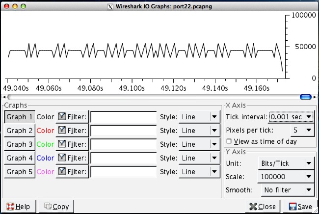 - Ouvrez le fichier capturé dans Wireshark et tracez un graphique d'E/S comme celui-ci.
