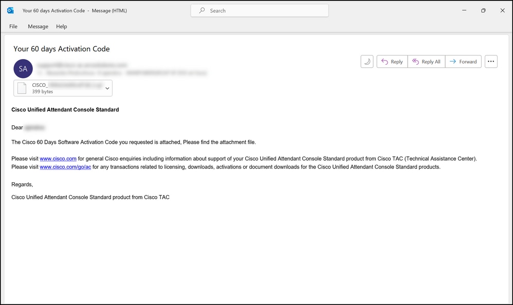 Figure 1 : exemple d'e-mail contenant votre code d'activation logicielle.
