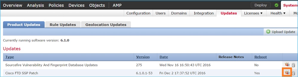 Méthode 2. Accédez à la page Système FCM > Mettre à jour, comme indiqué dans cette image :