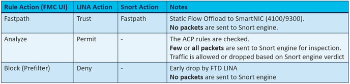 La politique de contrôle d’accès FTD contient une ou plusieurs règles, et chaque règle peut avoir une de ces actions et comme le montre l’image :