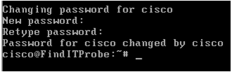 Vous serez invité à modifier le mot de passe du compte cisco. Les adresses de l'interface utilisateur graphique d'administration et d'adresse IP DHCP s'affichent.