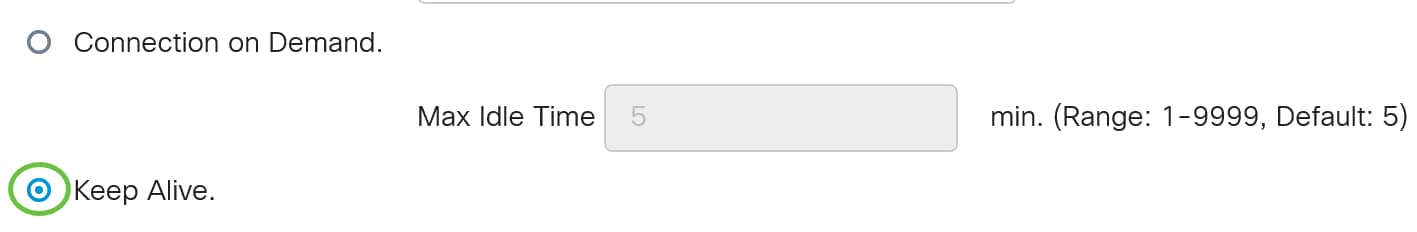 Dans cet exemple, Keep Alive est sélectionné. Voici la configuration par défaut .