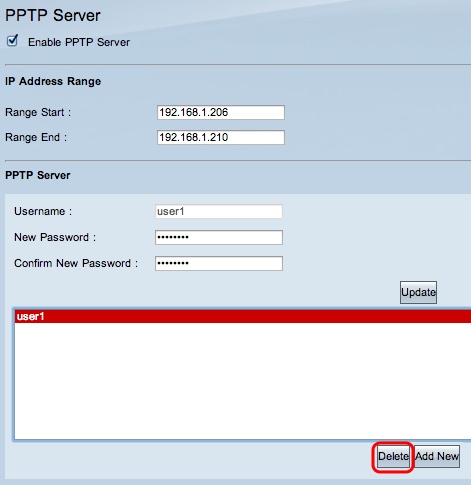 Étape 10. (Facultatif) Pour ajouter un nouvel utilisateur à votre serveur PPTP, cliquez sur Add New et répétez les étapes 5 à 7.